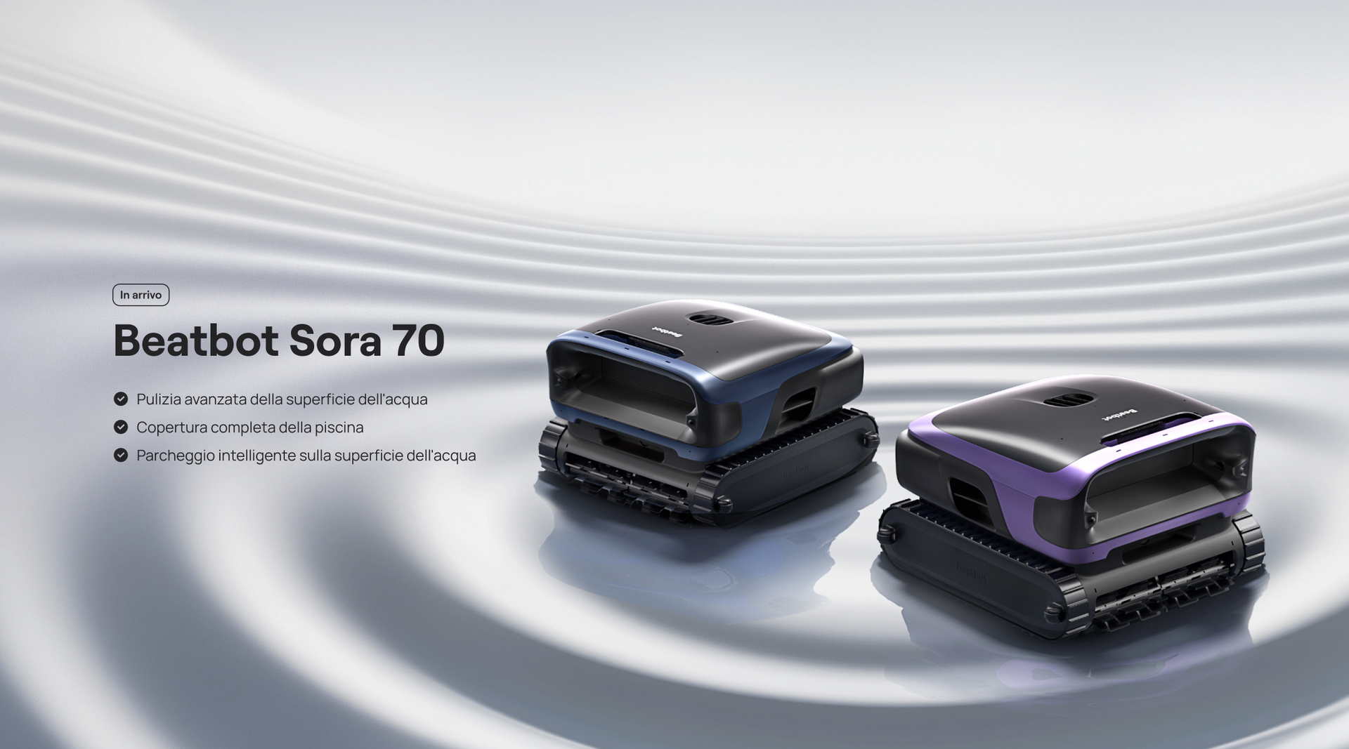 Beatbot Sora 70 offre prestazioni di pulizia potenti e affidabili in una forma più accessibile — una nuova espressione della filosofia di Beatbot per la cura quotidiana della piscina.